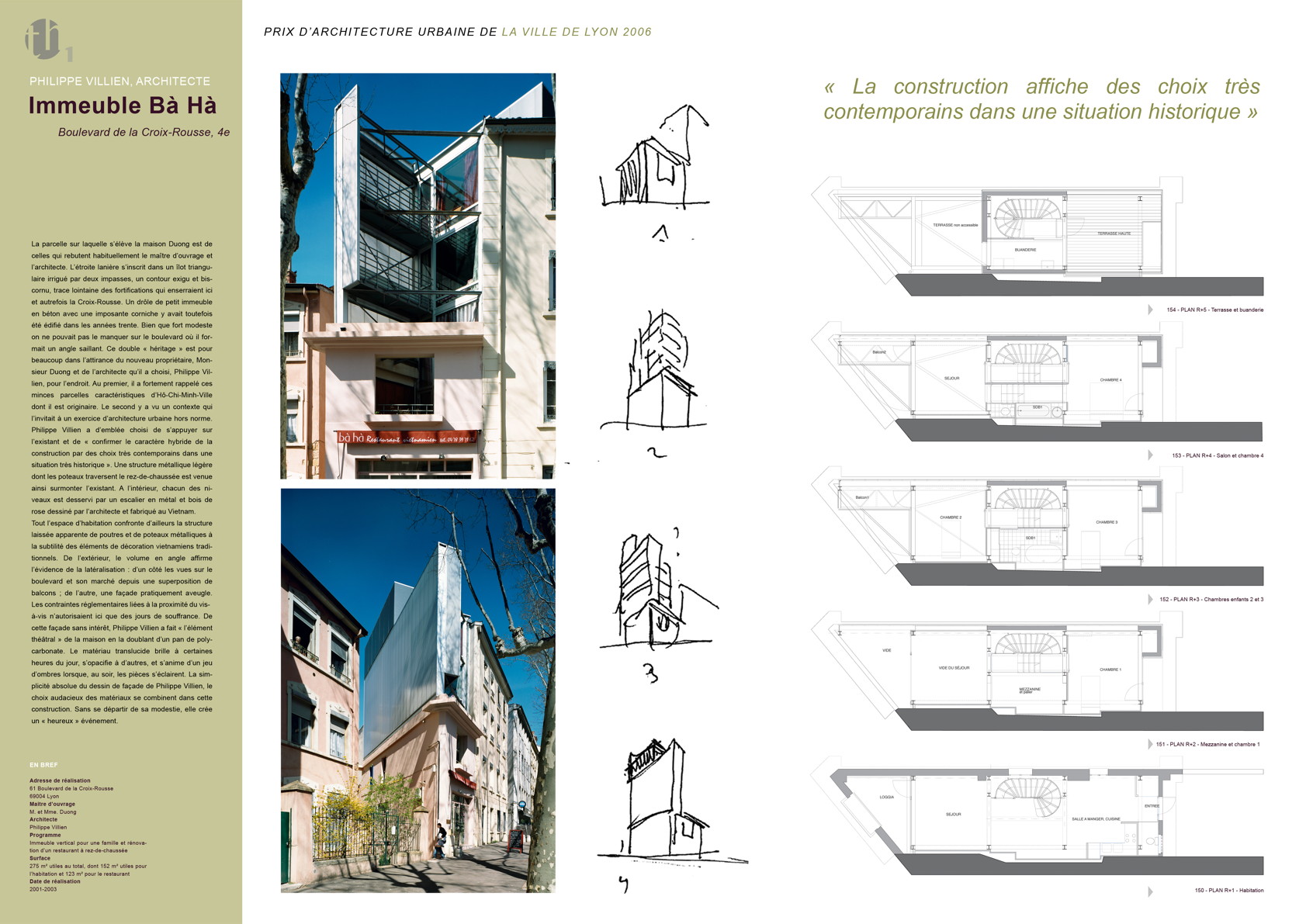 (VOIR AUSSI LES PROJETS DANS TH2, et dans PROJETS EN COURS : pv160 : une surélévation en charpente bois à Ivry, pv097 une surélévation d'un immeuble à Lyon, pv112 : un loft à Lyon, pv153 : une maison bois à Ronquerolles, pv 154 : 3 logements dans d'anciennes écuries -79)