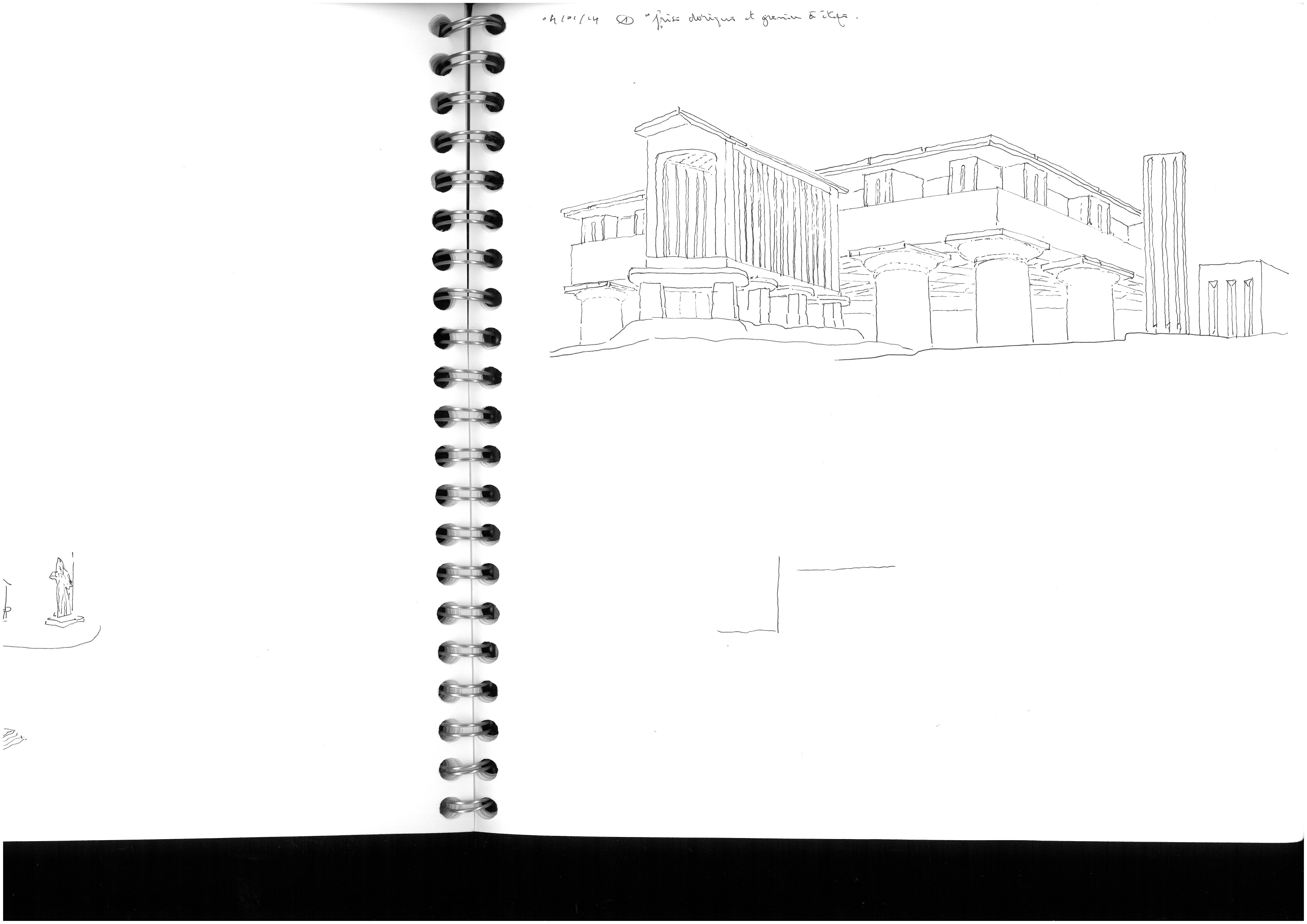 villien_th5 - dessin de Philippe Villien pour l'article : "Le temple dorique grenier monument de la cité grecque"
