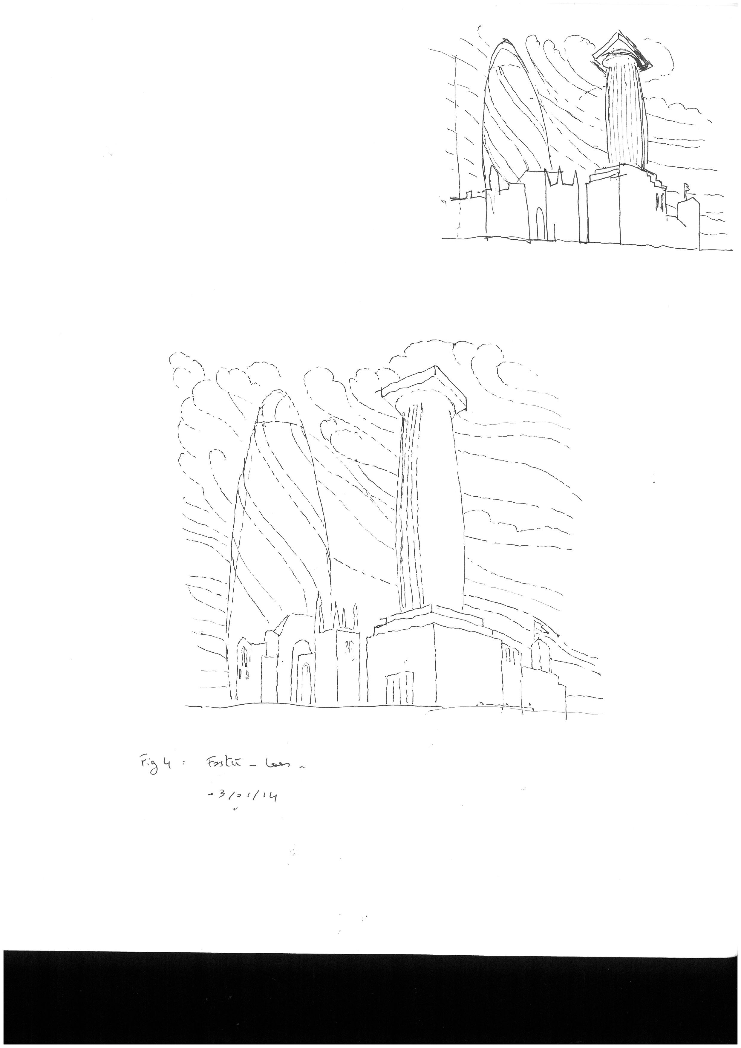 villien_th5 - dessin de Philippe Villien pour l'article : "Colonnes triomphales de Foster à Londres et Loos à Chicago"