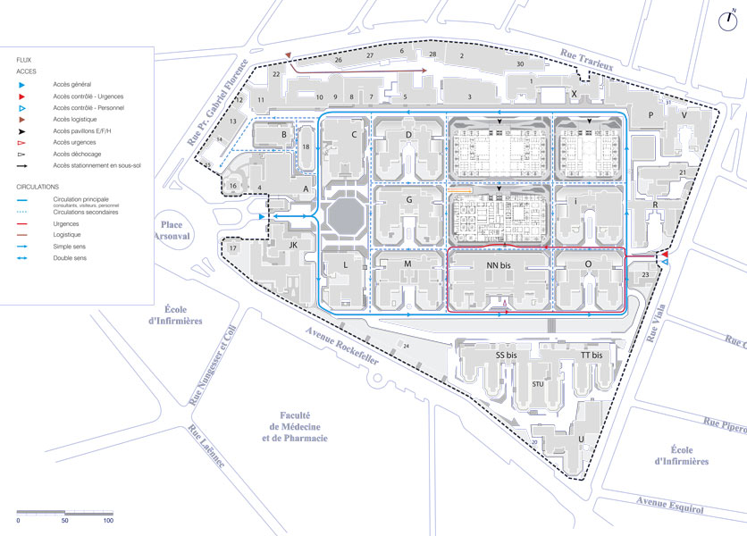 HCL, Hôpital Édouard Herriot à Lyon - Pavillon H, aménagement extérieurs du site - 69