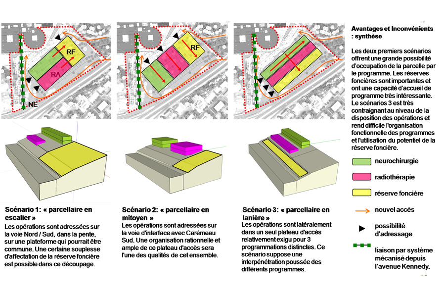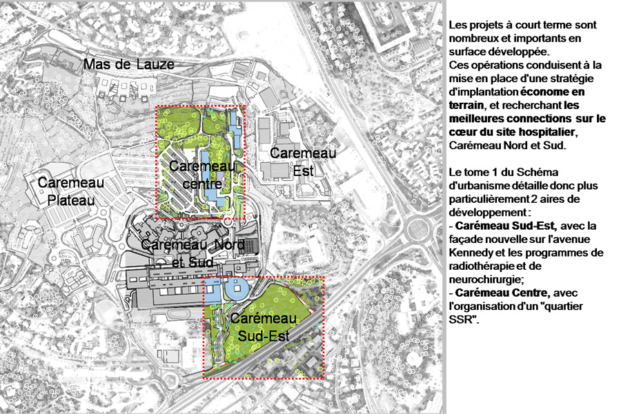 deux aires de développement Carémeau Sud-Est ( radiothérapie, neurochirurgie)