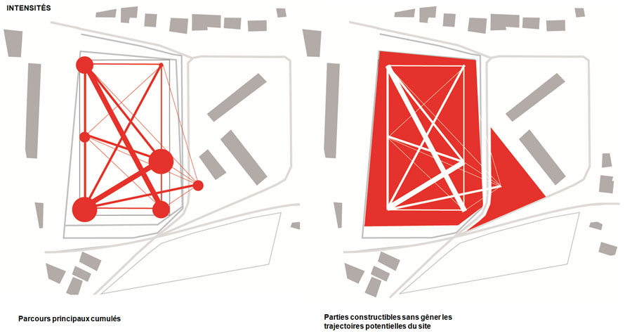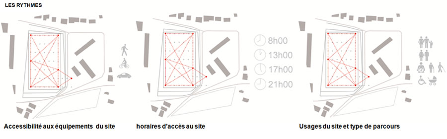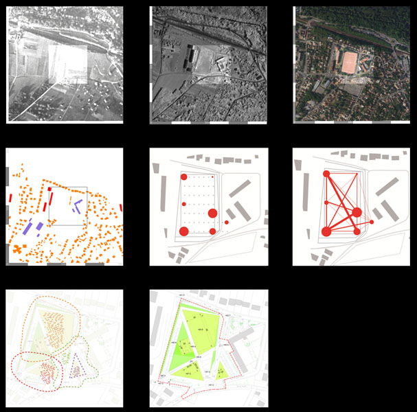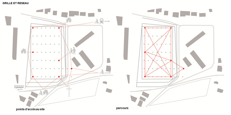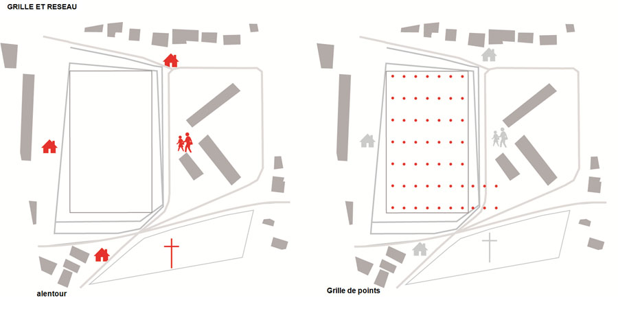 Maison de quartier et Gymnase, terrain de sport, place publique, logements collectifs
