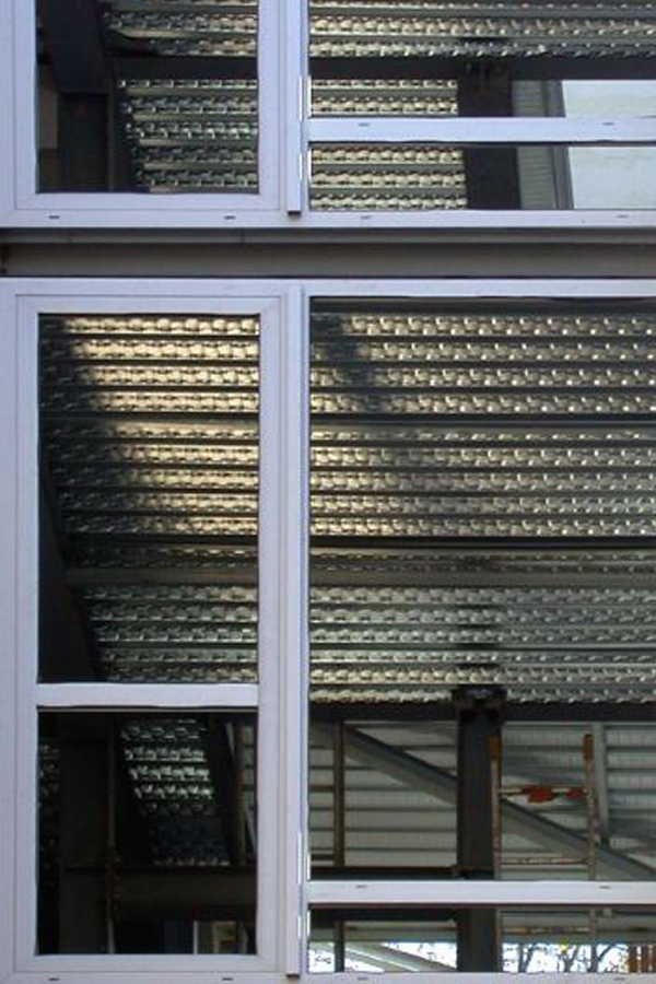 L’esprit de cette architecture est résolument moderne : ossature métallique légère, habillage en panneaux de polycarbonate et de plaques de ciment, grandes baies vitrées procurant une lumière généreuse.