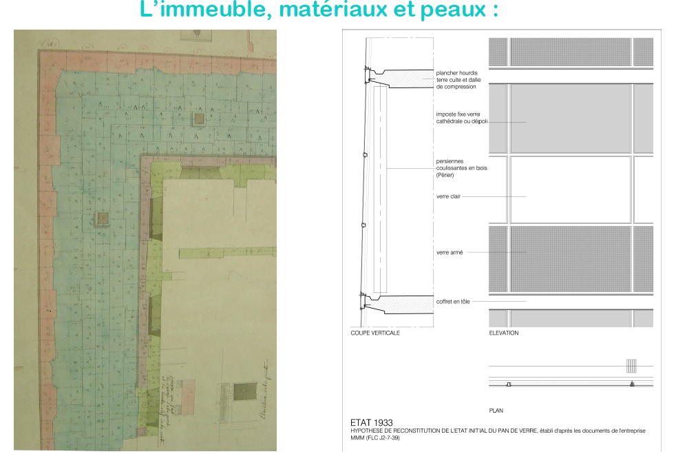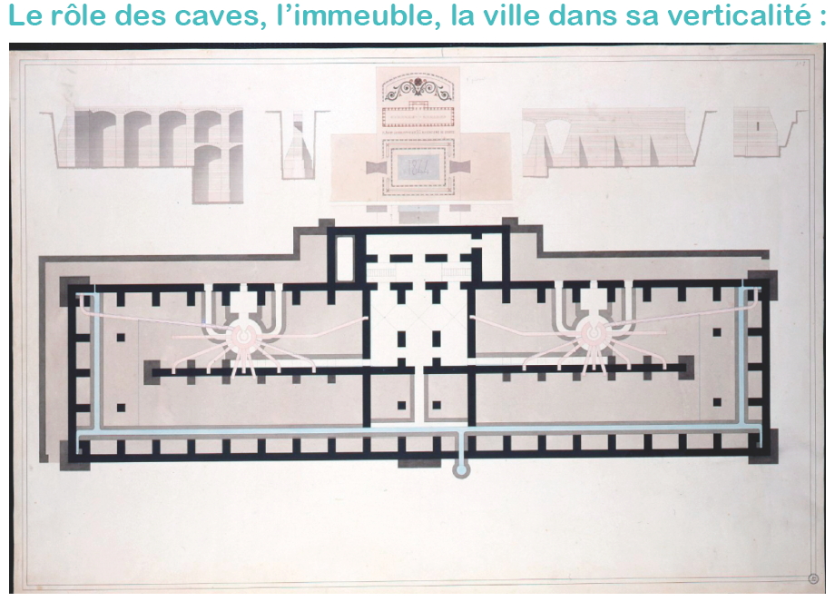 Pour saisir, dans la longue durée, la consommation énergétique urbaine et les économies dans Paris, notre groupe de recherche souhaite mettre l’accent sur l’épaisseur de la ville, de la cave à la canopée. La verticalité, exprimée par la coupe, est un enjeu scientifique peu appréhendé par les sciences académiques attaché à la vision en plan des étages nobles, tandis que la physique exerce la gravité. Trop souvent les publications qui rendent compte des édifices omettent les plans des sous-sols et celui des combles, de même, les représentations en coupe sont rares. Parmi les questions, qui nous concernent, citons l’arrivée de la production énergétique et ses migrations, au sein de l’édifice, en étages, puis en sous-sol, puis en partie haute du bâtiment, en liaison avec les stockages et les accès aux réseaux.