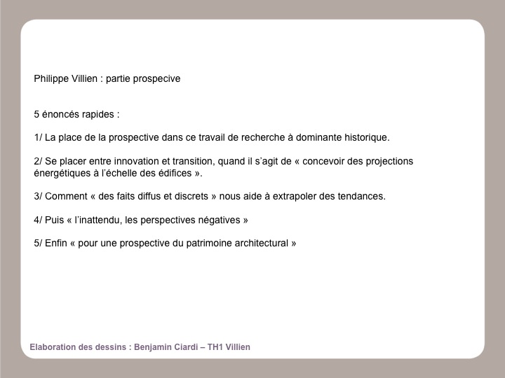 DISCOURS « PARTIE PROSPECTIVE DE HPCE » pour le colloque 23 novembre 2012 - Titre : « éléments pour une prospective architecturale »