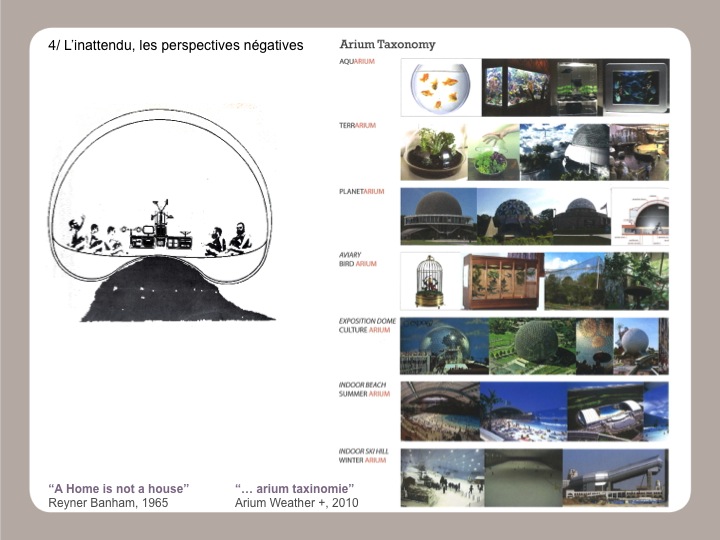 Dans cette approche transitionnelle nous intégrons l’apparition de nouvelles sources d’énergies et de nouvelles formes de distribution. Ces hypothèses ont une bibliographie restreinte mais d’une grande cohérence. Ainsi le remarquable ouvrage « Arium Weather + Architecture » nous désigne de multiples cibles pour élaborer des scénarios sur nos édifices emblématiques parisiens.