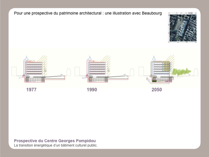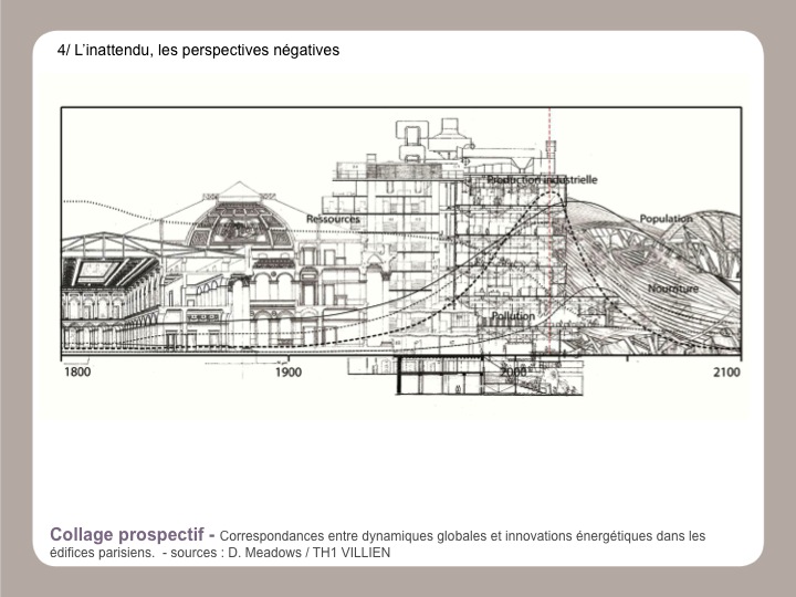Lors du grand développement des utopies dans les années 1950 à 1970 les grands mouvements de pensées utopiques entremêlaient prospectives positives et projections négatives. Nous entendons opérer dans une hypothèse similaire : le futur de 2012 à 2050 assemblerait des séquences complexes, avec des visions énergétiques optimistes et d’une vitalité désespérée. La lucidité n’est pas ici la qualité la plus évidente pour développer un spectre large de futurs énergétiques possibles sur des édifices architecturaux parisiens et emblématiques. Il nous faut reconnaître que convoquer le futur énergétique de ces édifices emblématiques va nous conduire à investir un futur architectural engagé, revisitant les avant-gardes des sixties et seventies.