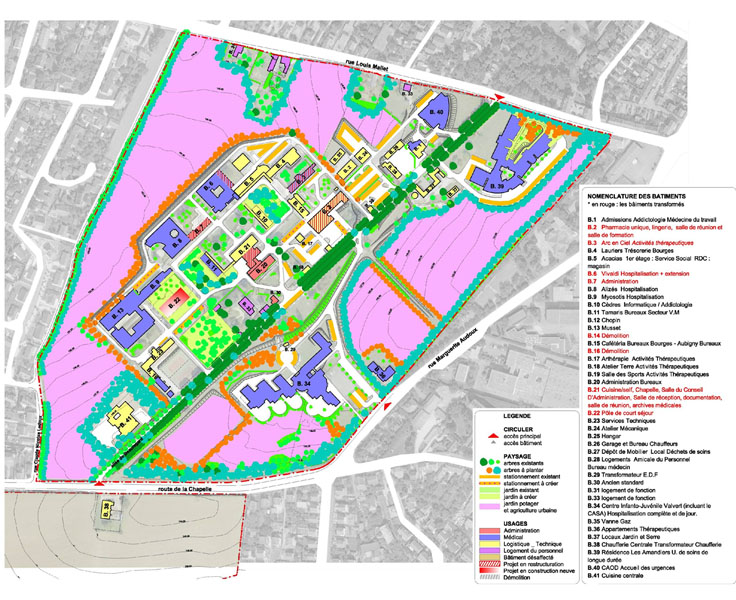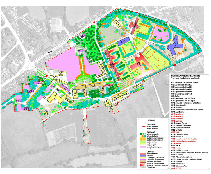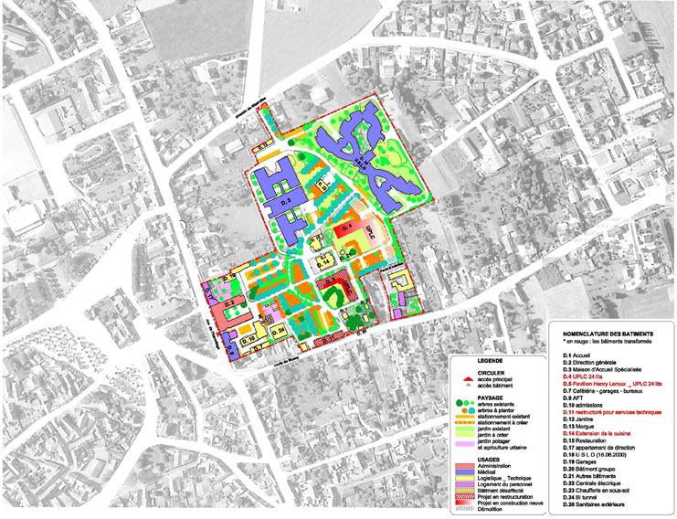 plan masse équipement, technique hospitalière,santé mentale,agriculture urbaine,patrimoine reconversion, prendre soin