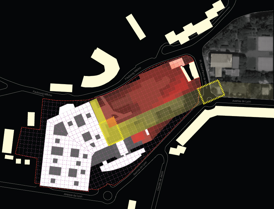 Schéma directeur du site. Etudes en vue de la réutilisation du terrain libéré par la déconstruction de l'ancien hôpital. Phasage détaillé à court, moyen et long terme.